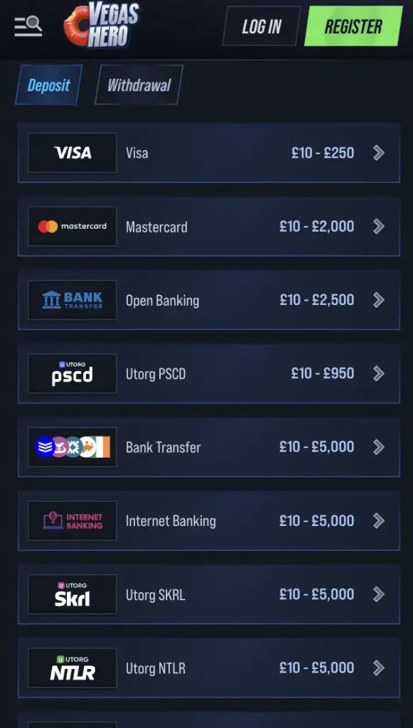 VegasHero Casino Payment Methods for UK Players